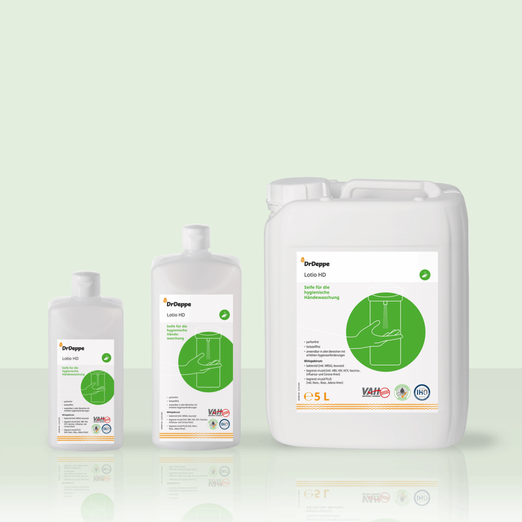 Lotio HD ist ein gebrauchsfertiges, alkoholhaltiges und waschendes Desinfektionsmittel zur hygienischen Händewaschung. Begrenzt viruzid PLUS wirksam.
