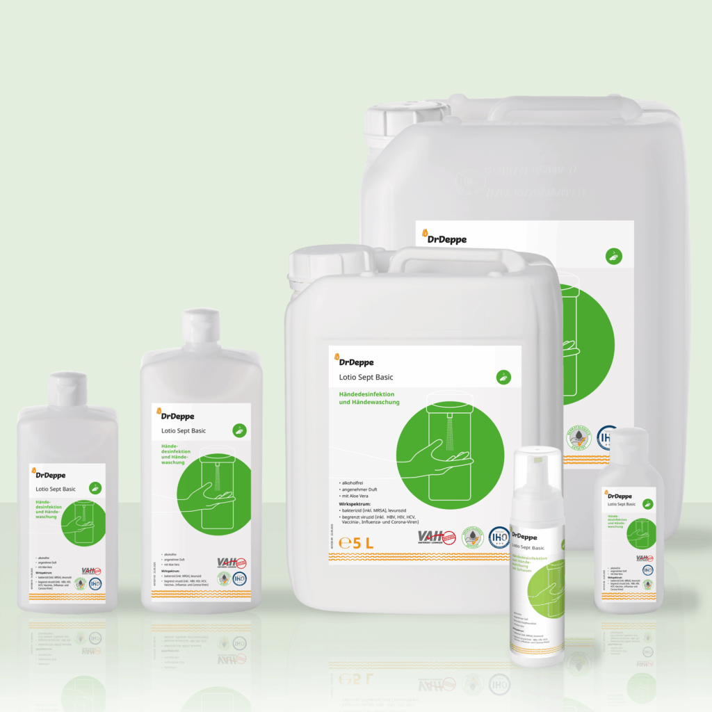 Lotio Sept Basic ist ein gebrauchsfertiges alkoholfreies Desinfektionsmittel zur hygienischen Händedesinfektion und hygienischen Händewaschung. Begrenzt viruzid wirksam.